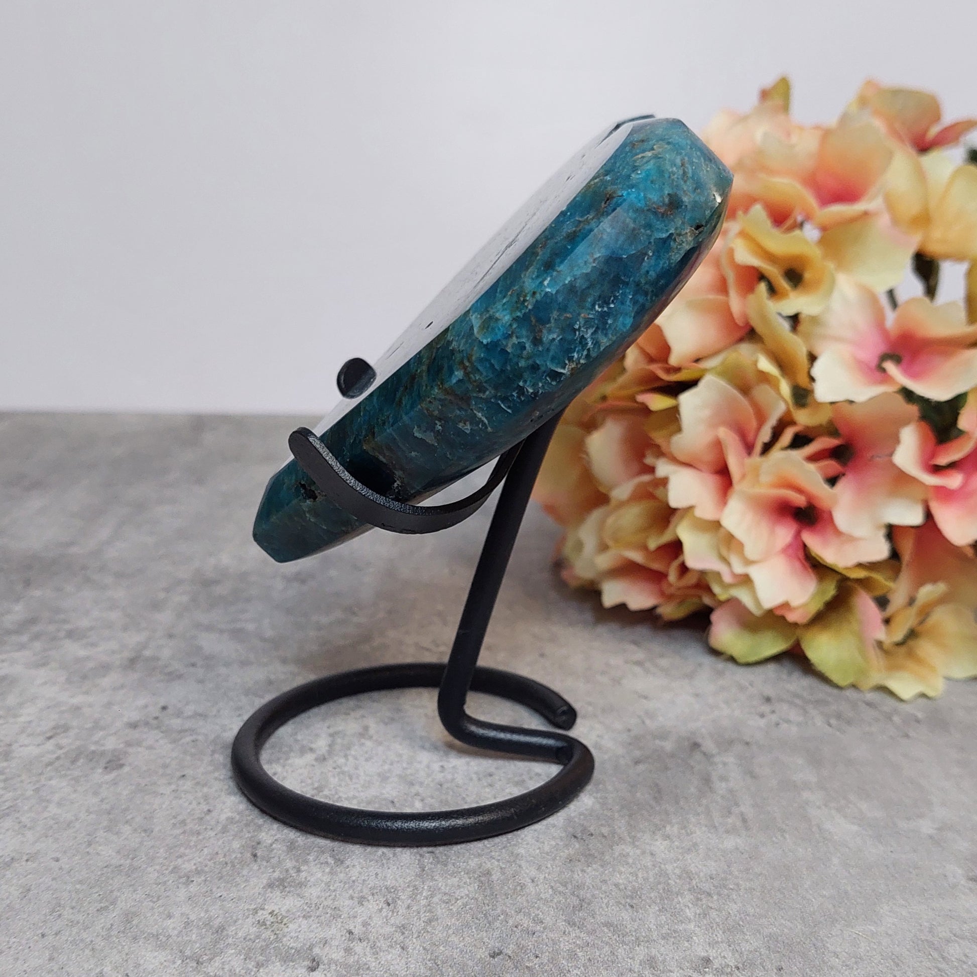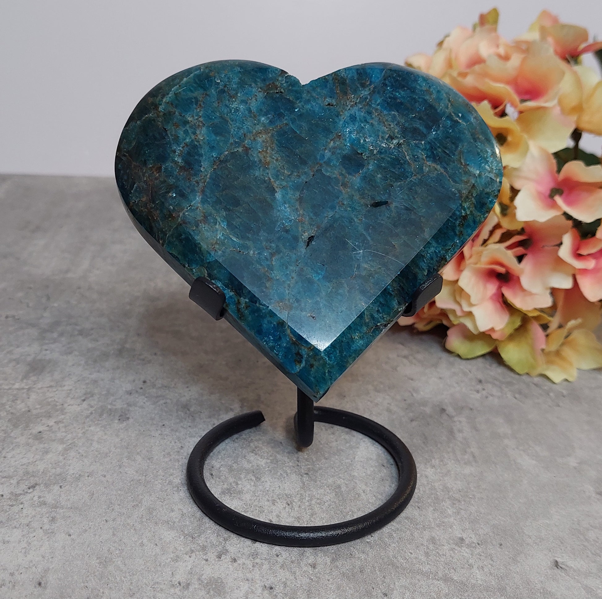 Tumma laadukas apatiitti sydän mustassa metallijalassa