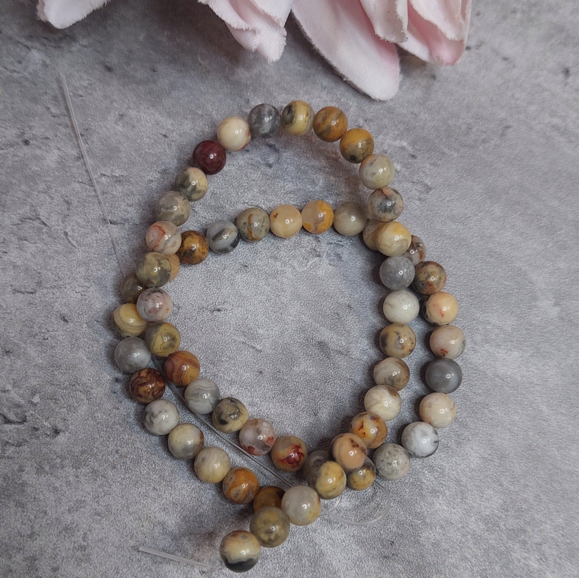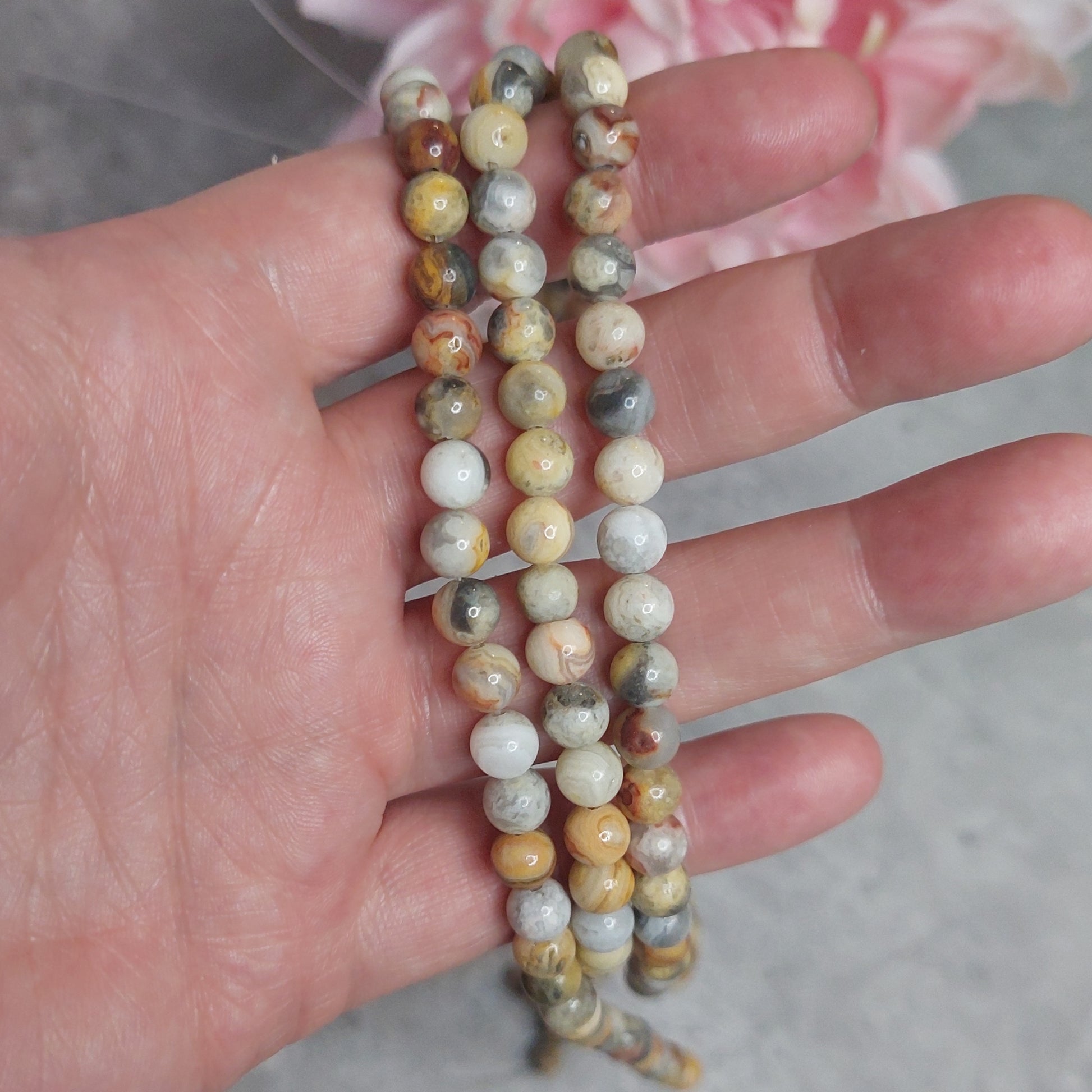 Helmiä 6mm, crazy lace akaatti 38cm nauha