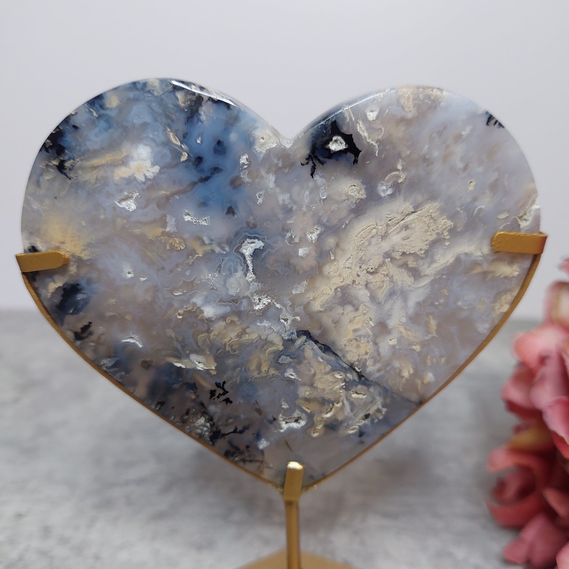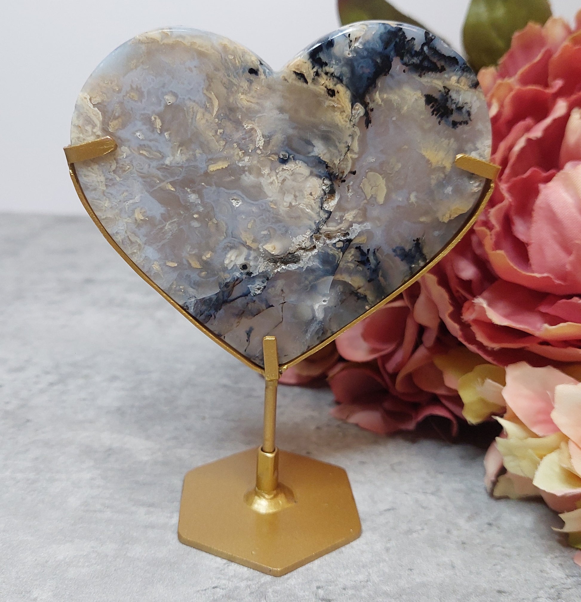 Harvinaisempi dentriittinen akaatti sydän, jossa paljon nähtävää. Nämä on tuotettu pientuotantona uudella Indonesian hiomollamme, jossa koko perhe on mukana hiomon toiminnassa.